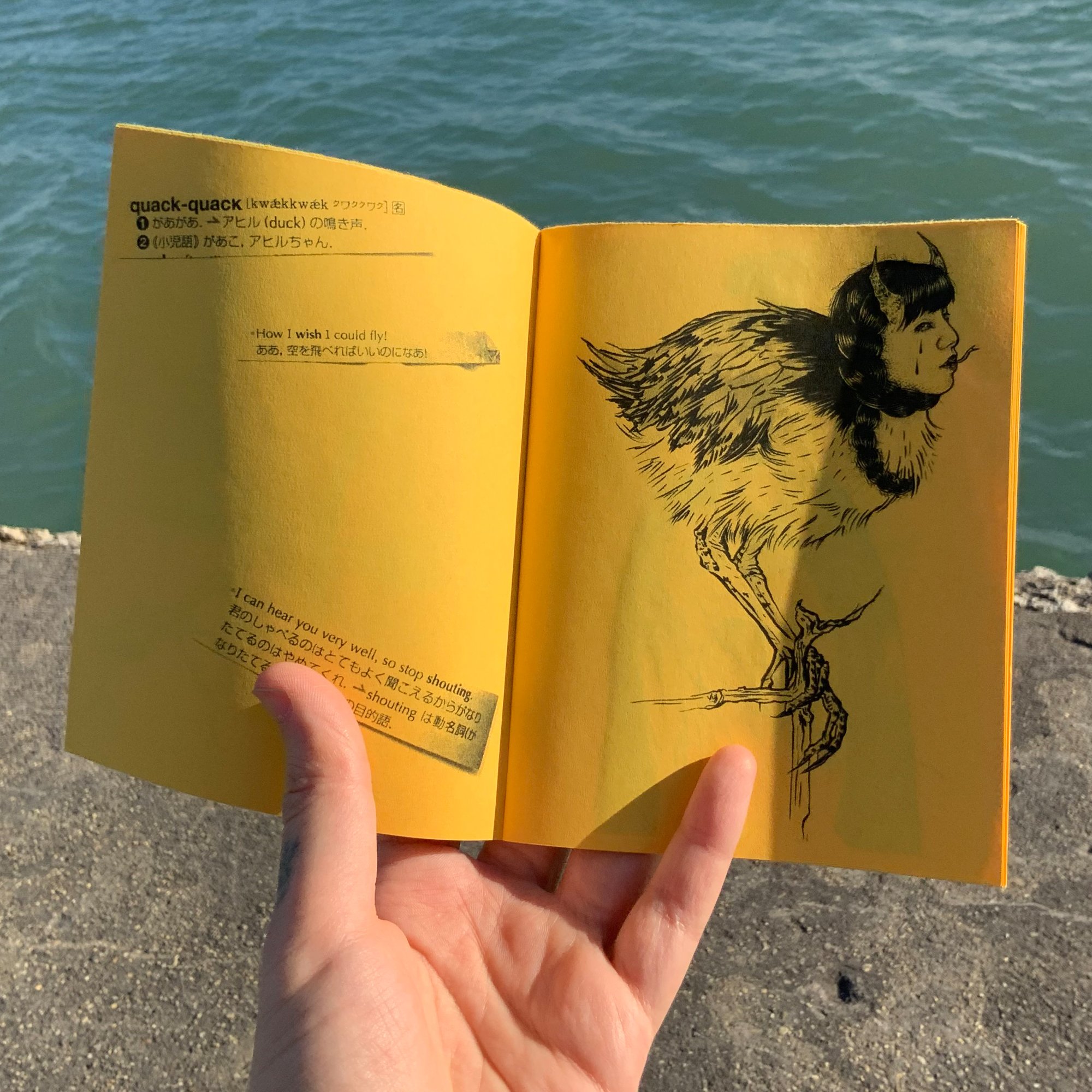 Collection of illustrations I drew based on cut up Japanese-English dictionary translations I pulled from a bag at random. 28 pages, 4.25" x 5.5"